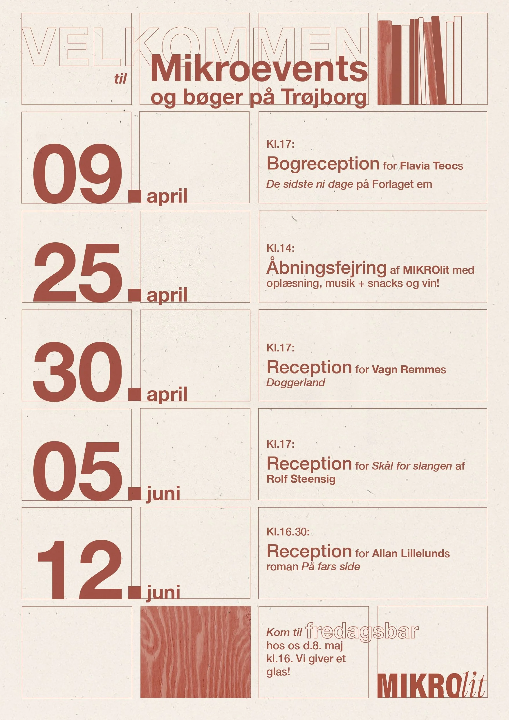 Mikrolit er stor litteratur fra de små forlag. I Danmark blomstrer de små kvalitetsforlag op, på trods af svære markedsvilkår, små midler og diverse gebyrer. Vi vil med denne butik sælge og formidle vild, skæv og prangende litteratur fra de store små!